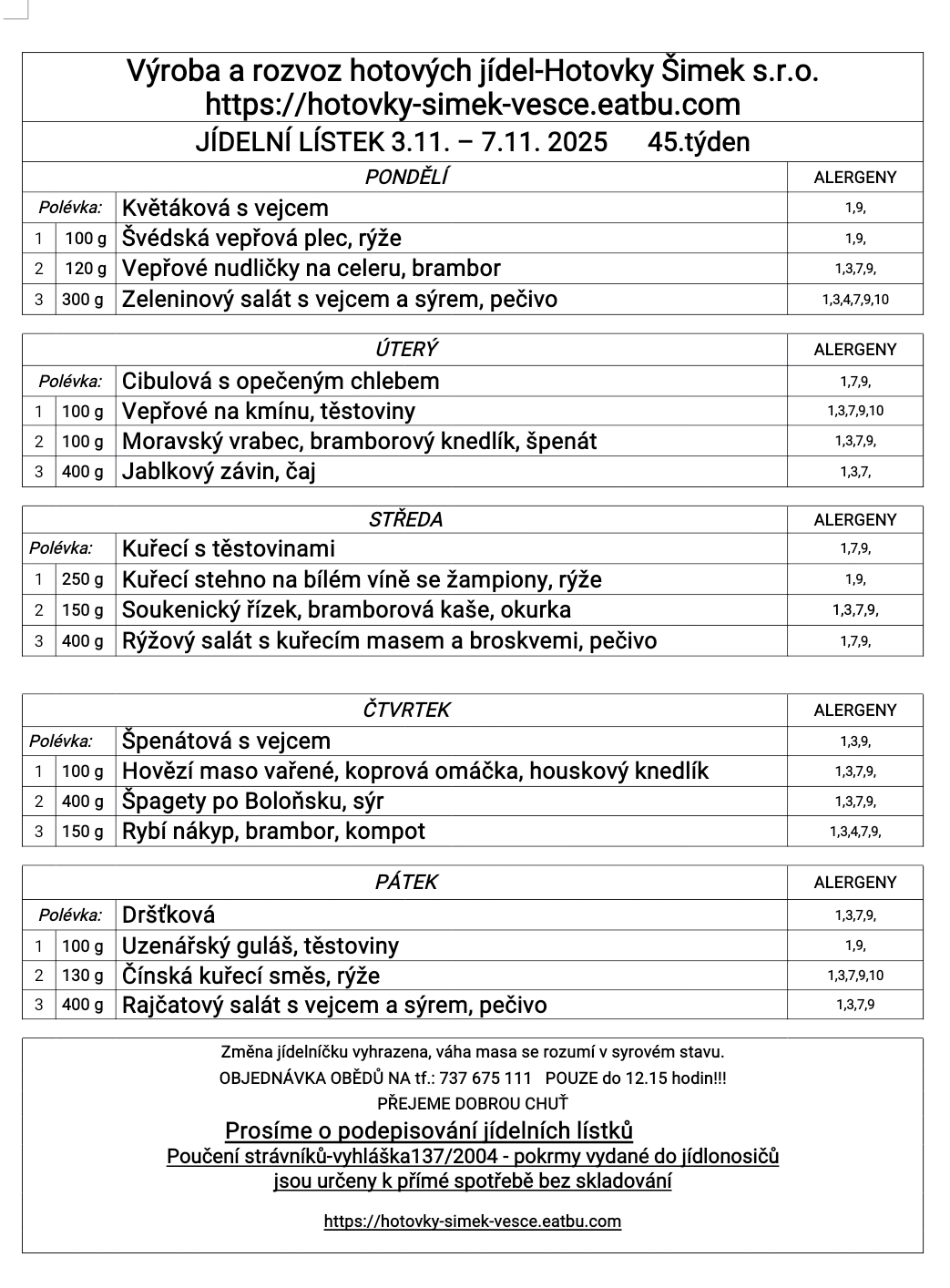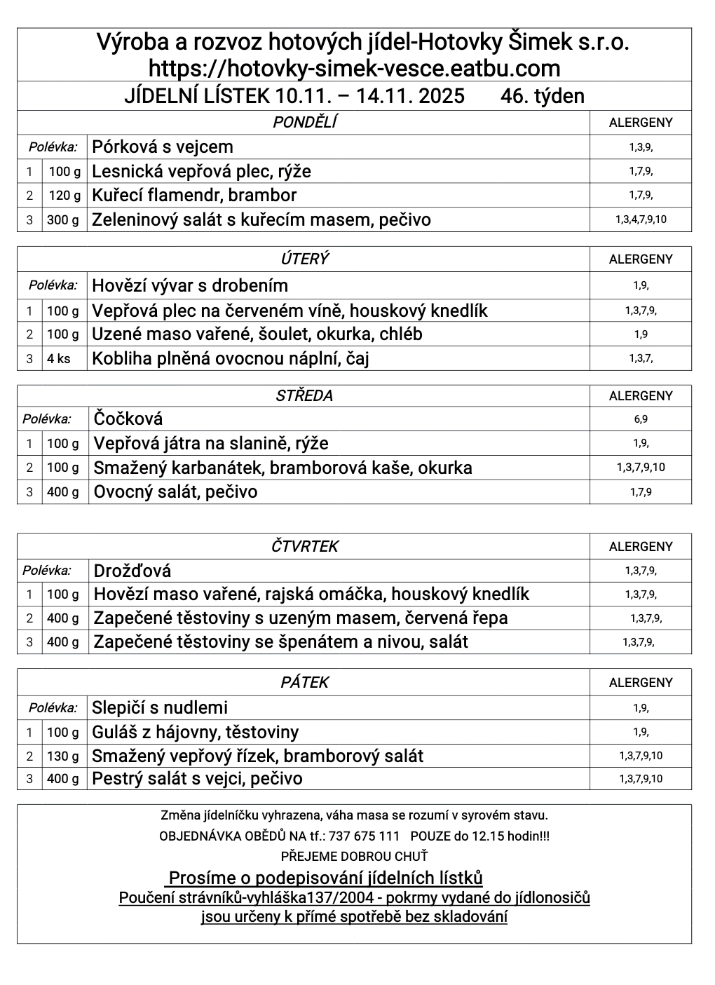 OBJEDNÁVKY JÍDEL NA TF: 737 675 111 pouze do 12:15 h.